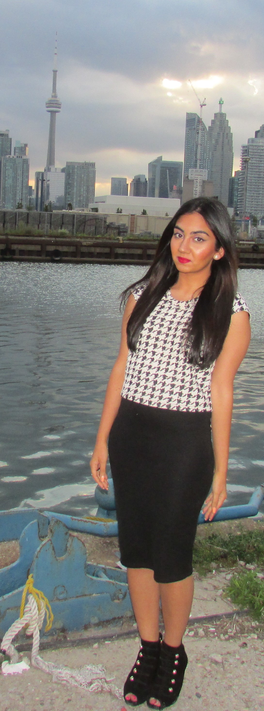 My cute booties are from Vince Camuto. I wanted to keep colour on a minimal, so I stuck with a black shoe plus its a small heel (2 inches) which is a little more convenient and comfortable on a boat.