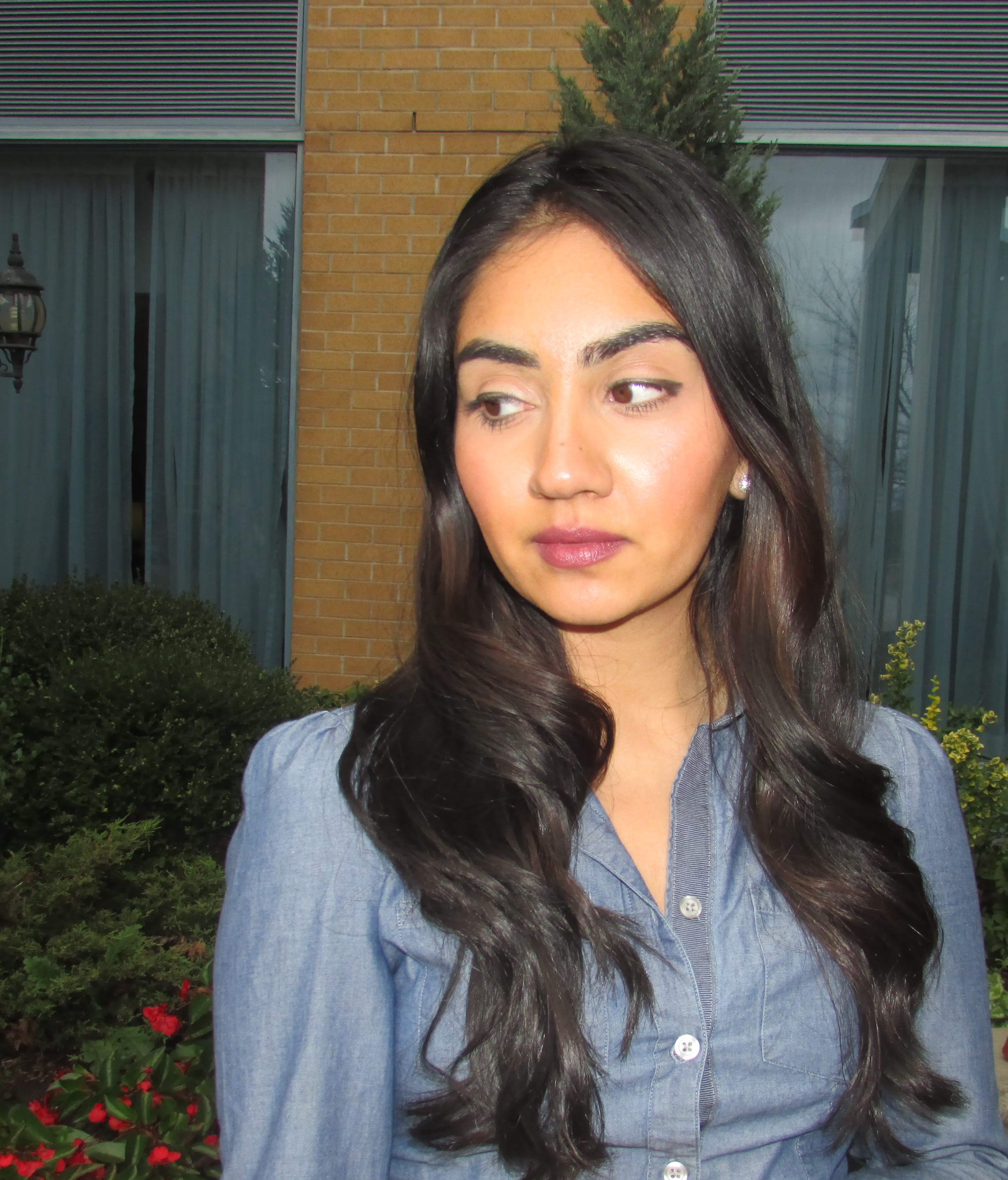 The color lipstick I used here is Clinique Different Lipstick in the shade A Different Grape. When I looked at this color I was thinking it would be a much darker tone and it does seem that way when I first applied it. However you can see it is lighter with a shine to it. Being outside when the sun was out you could see it reflect the shining light and look glossy.