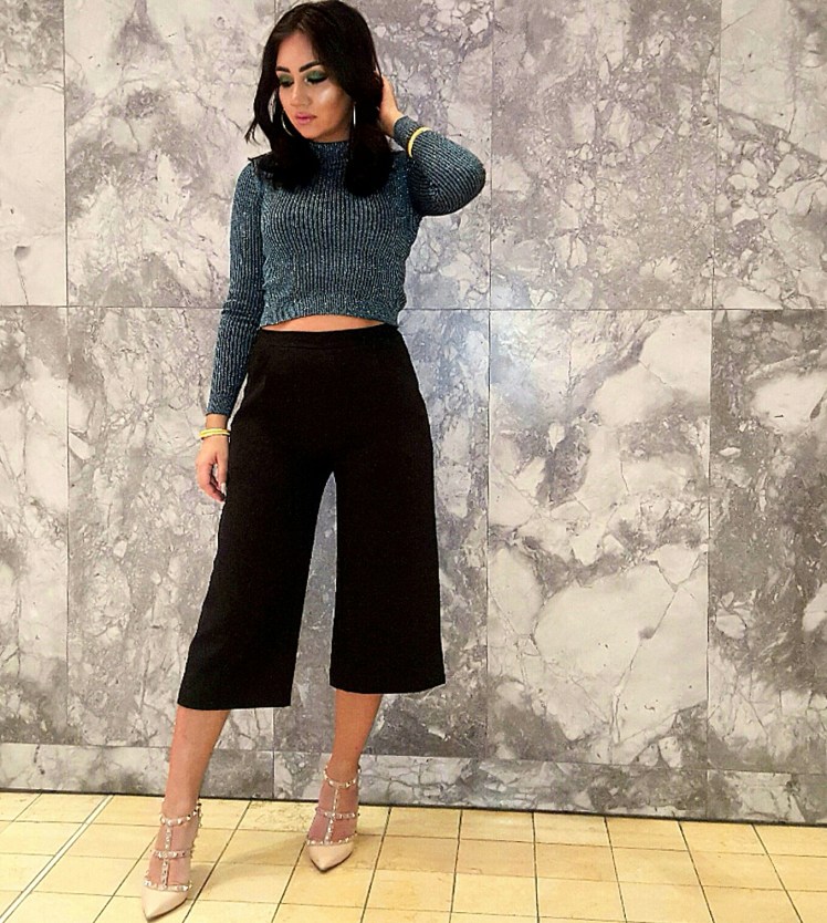 On Day 1 I kept it very classy, glam and chic with my outfit. I paired a high neck crop top with high waist culottes and hella. My glam was a super bold green eye look paired down with a neutral glossy lip and straight hair.