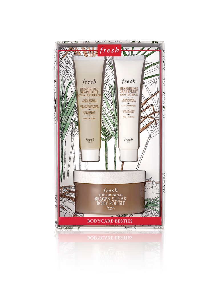 Get your shower caddy ready for some sugar! This fresh gift sets comes with their fan favourite brown sugar body polish that will exfoliate and keep your skin extra soft and sweet 😉 The set also comes with their Grapefruit bath& shower gel and body lotion.
