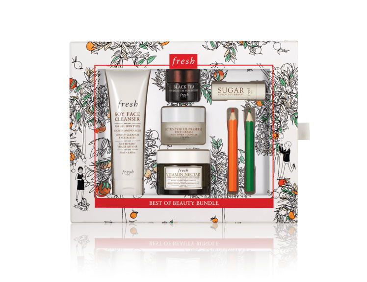 This is the perfect beginner face set to introduce you to fresh skin products. It comes with some of their most famous, talked about products including their soy face cleanser, black tea eye cream, vitamin nectar mask, lotus youth face cream and sugar lip treatment. Best of all is the do it yourself coloring packaging – with two color pencils you can feel like a kid again!