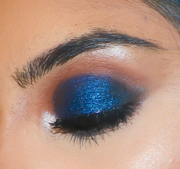 I decide to play with the Stila Shimmer & Glow Vivid Sapphire for this look. I used the product straight from the tube to really give the fullest, bold look. It is incredibly pigmented so you only need one swipe to create this look. I finished off the look by warming up the crease as well as a bit of matte black shadow to really smoke it out.